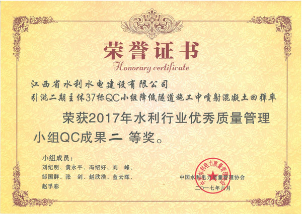 公司連續3年獲水利行業優秀QC小組成果獎