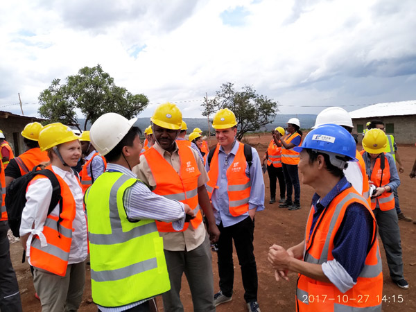 考察團一行在項目組人員的陪同下,先后實地參觀了營地建設情況,視察了工程施工現場,認真聽取了項目組負責人關于施工現場臨時工程建設情況、主體工程施工方案、工程進度、ESHS執行情況以及項目的自由通關、雇工招聘等工作情況匯報,仔細詢問了施工人員勞動保護措施,安全生產管理情況等,并對工程建設提出了指導意見。考察人員對公司嚴格按行業合同要求,認真履約,積極推進施工進度,給予了充分肯定。并希望公司能順利完成項目建設,早日實現工程投產發電目標,助力當地經濟發展,造福非洲三國人民!